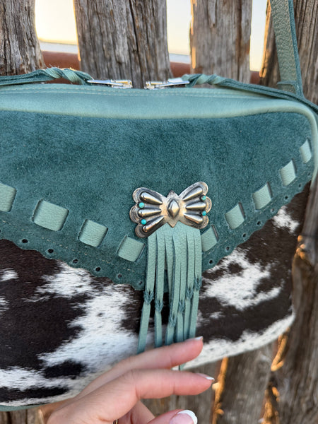 Zipper closure top, back pocket, one large pocket inside with coordinating leather color. All leather lined! Adjustable straps