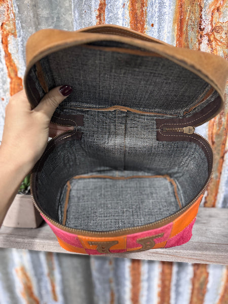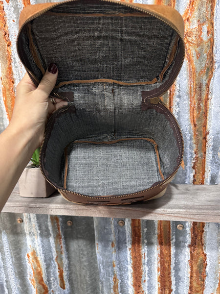 Handmade with genuine leather, these bags are sure to last you a long time! They are the perfect size for makeup, travel toiletry bags, and tons of other options! They are lined with laminated cotton to easily wipe out spills & messes! Measures 8” long, 5” wide and 6” tall