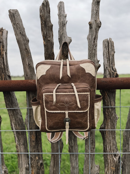 Measurements: 16” tall x 13” across, 5” wide. Front pocket measures 7.5” x 10”.